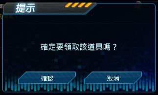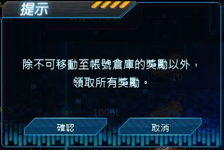 在該視窗點擊確認鍵後即可領取道具,但無法移動至帳號倉庫的道具除外